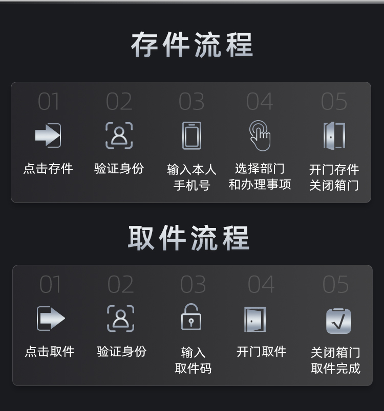 智能文件交换柜,又称智能文件中转柜,智能文件交接柜,电子文件交换箱,智能云柜等,是一款具有联网、收发件、短信验证码通知功能的智能柜,主要表现为:工作人员将当事人需要的文件放入智能文件交换柜中,并通过系统下发短信验证码给当事人,当事人只需要前往机关办事大厅,在智能文件交换柜终端显示屏中输入已有的验证码并取出自己需要的文件。